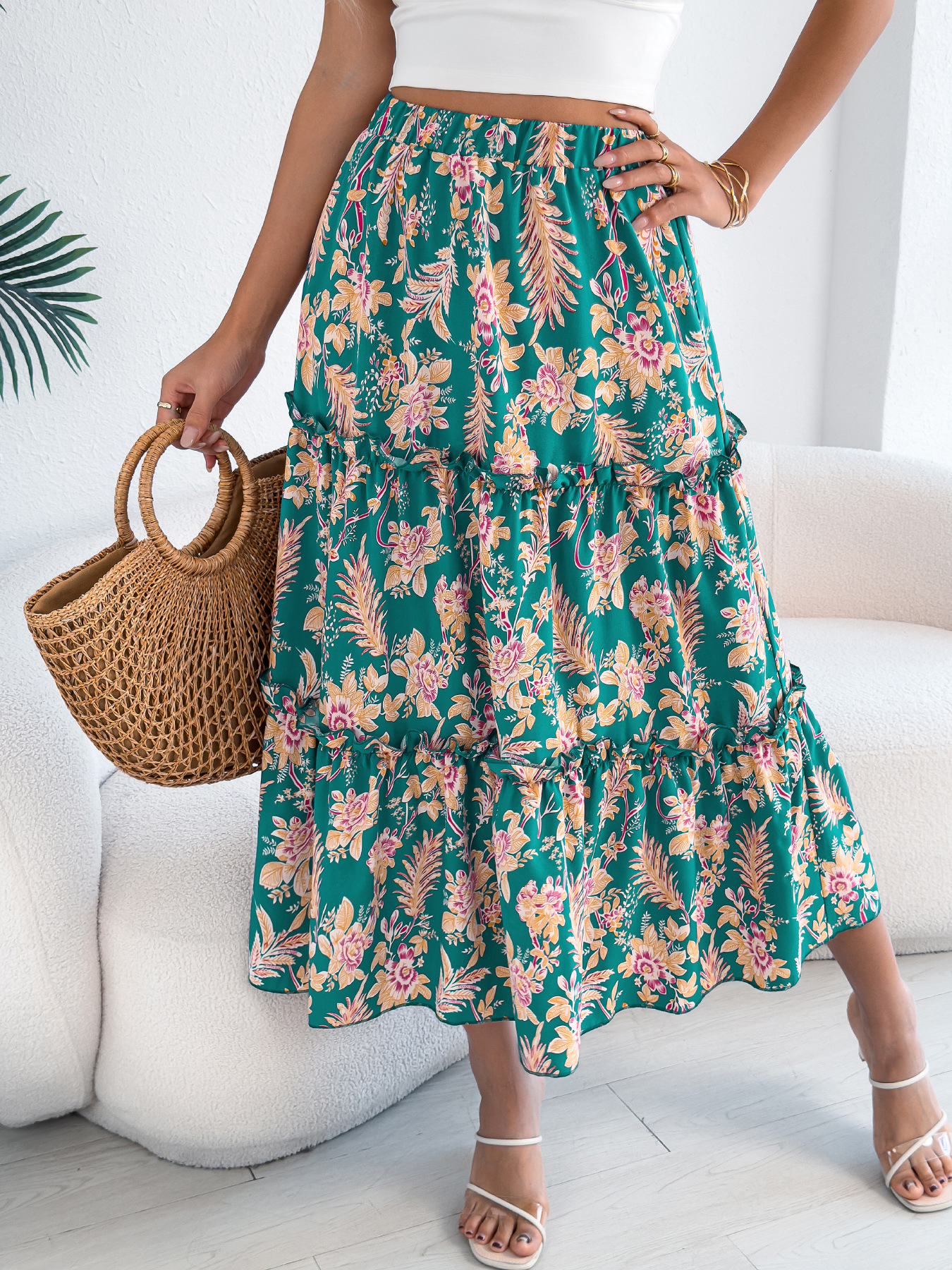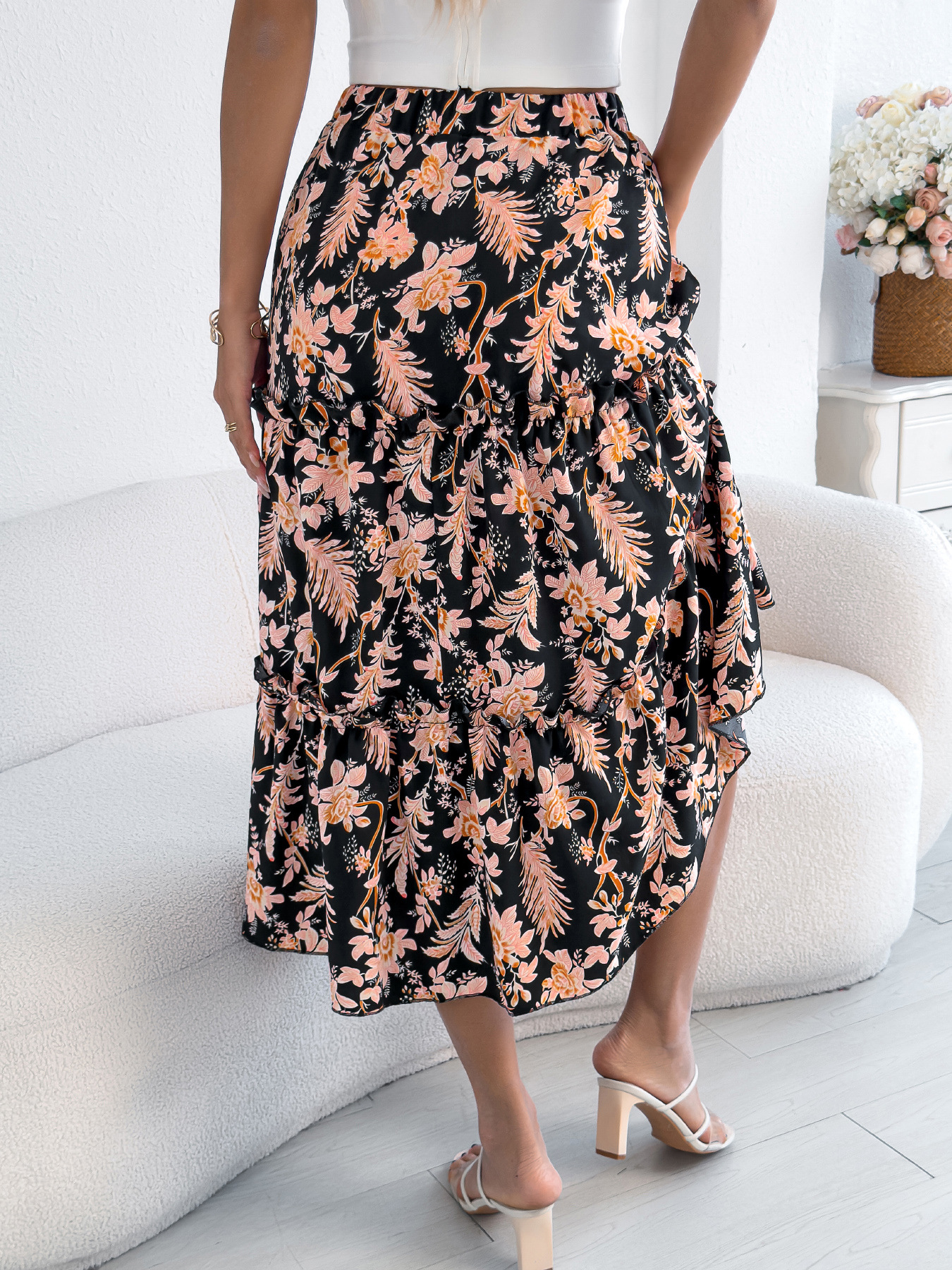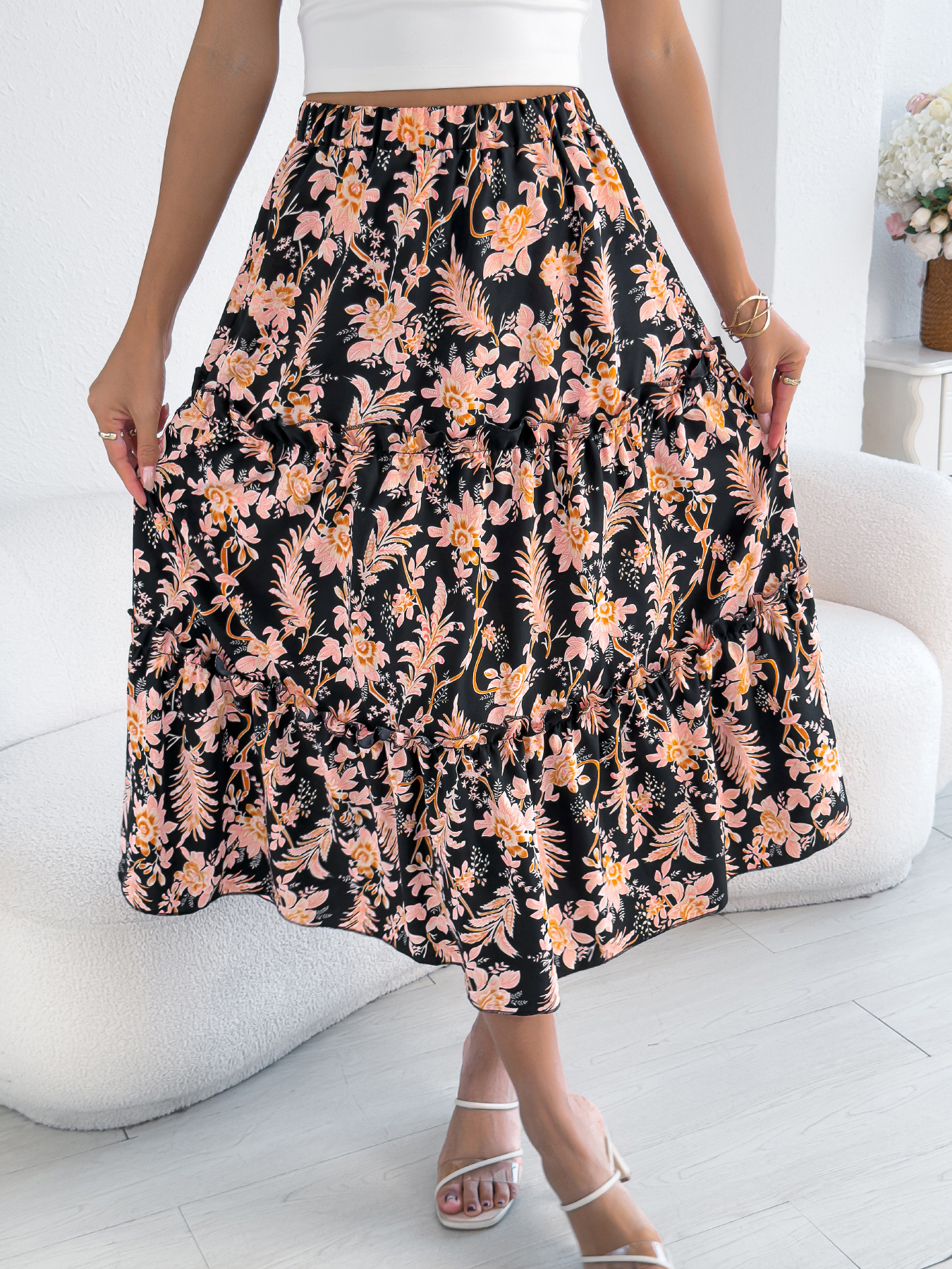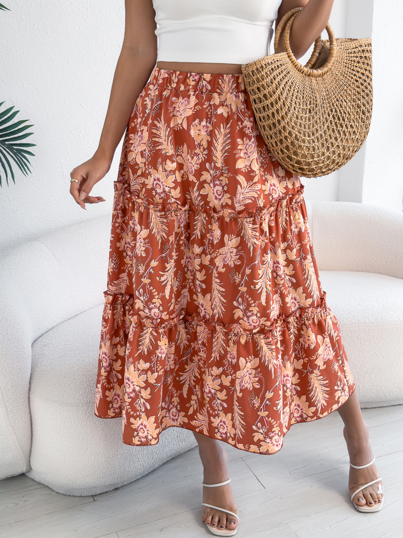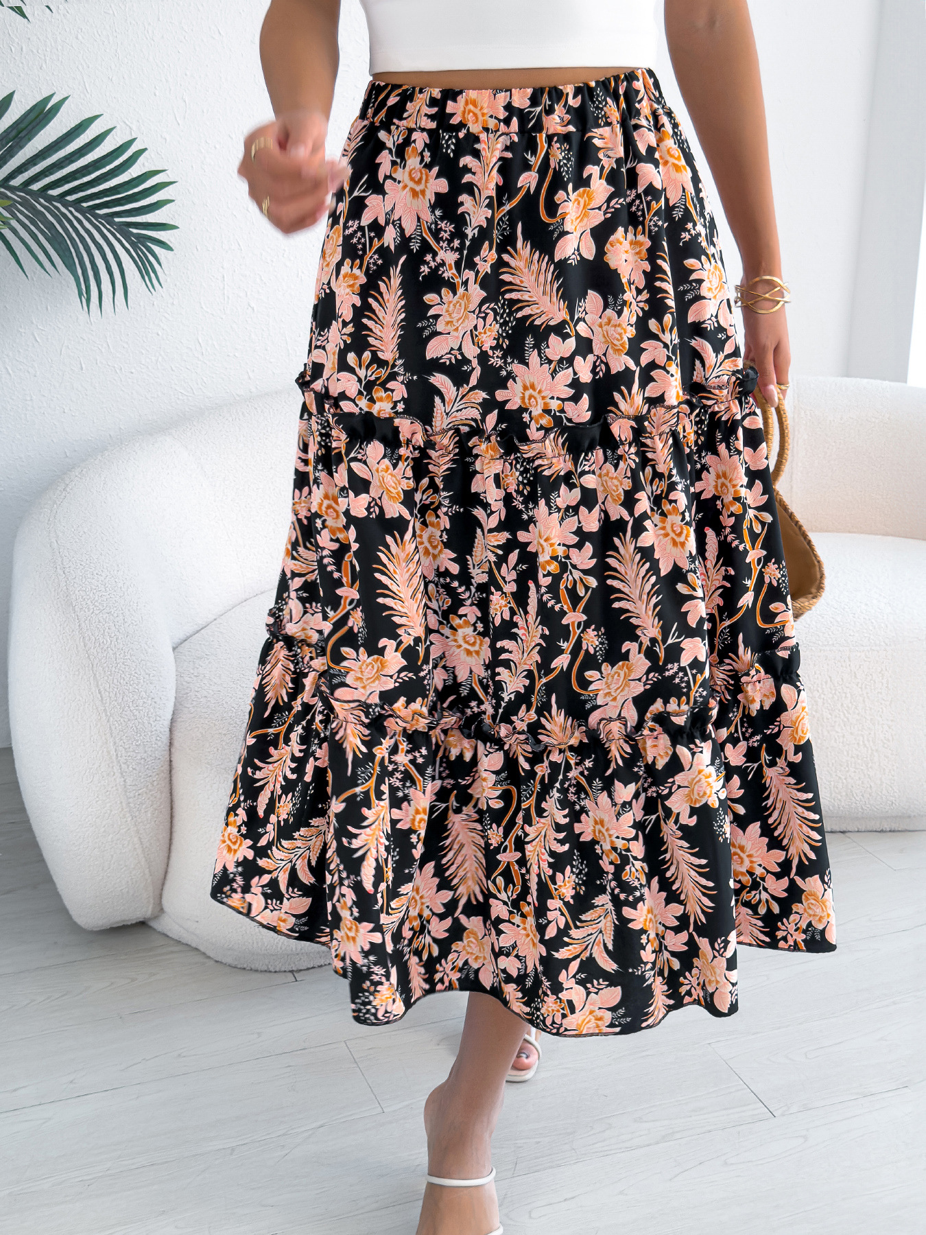 Ladies' Fashion Casual Floral Mid-length Skirt
