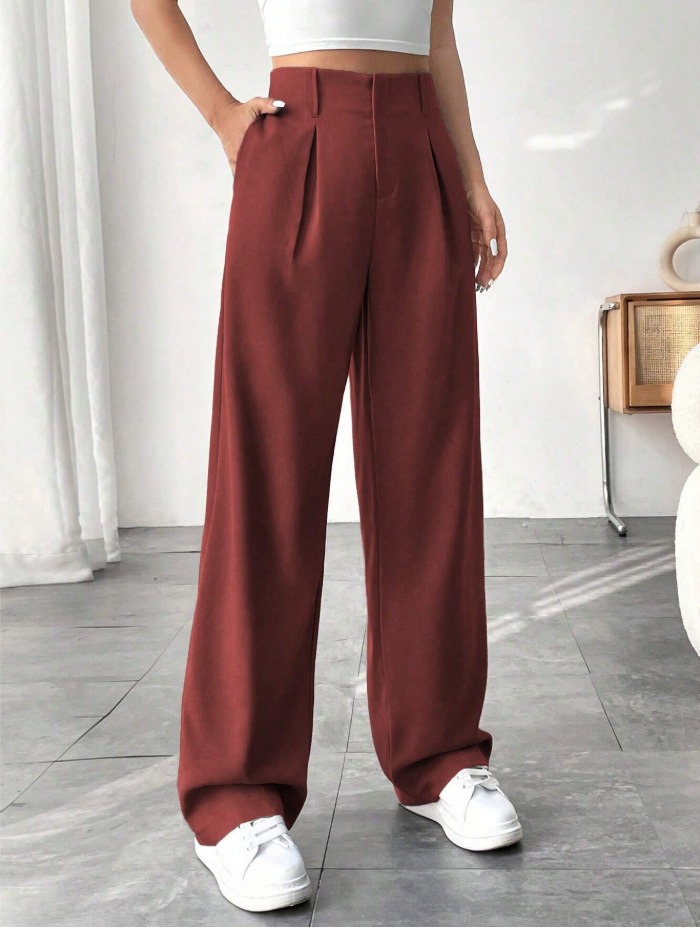 High-Waist Folded Straight-Leg Pants