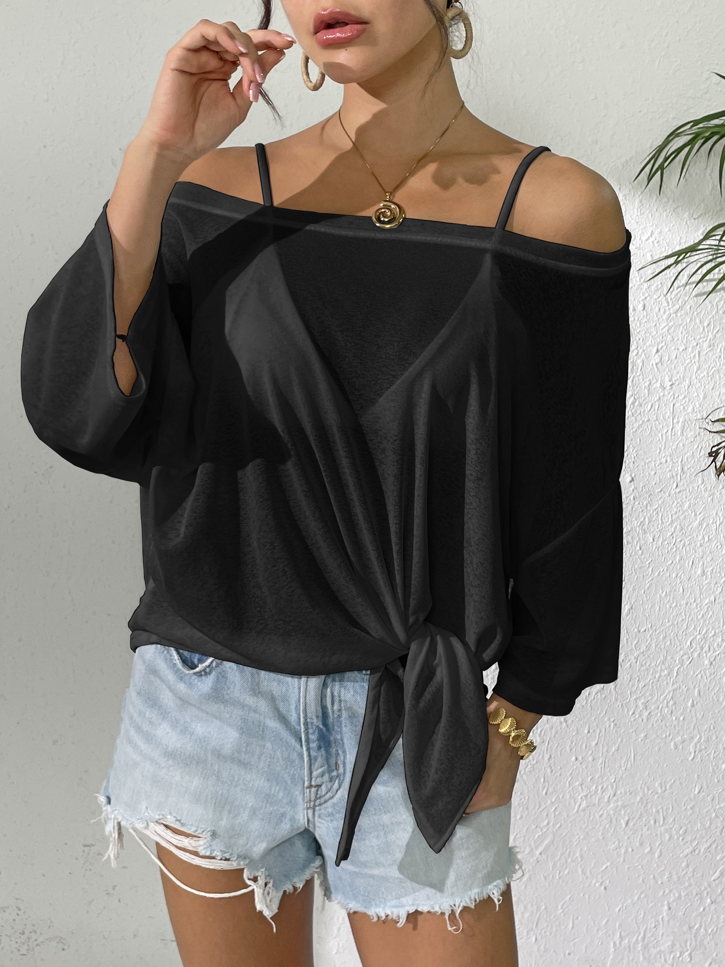The solid color design offers timeless versatility, making it easy to pair with your favorite swimwear. Available in White, Black, and Khaki, this one-size-fits-most piece is perfect for women seeking a refined, polished look at the beach or poolside.